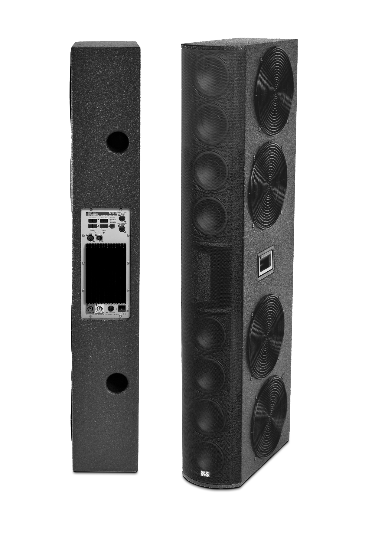 The 7 channel DSP is fully digital and equipped with FIR filters that are precisely tuned and measured on the 13 components of the CPD 18. The filter controls crossover, EQ, limiter and time alignement. The CPD 18 can easily be adjusted to the room via the digital operating menu on the back or remotely via KS own remote software.