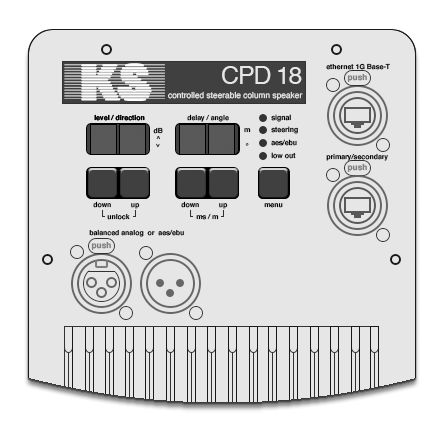 With the presence of a low-cut switch, the CPD 18 can be switched as a pure speech system or as a full-range system in combination with a subwoofer. The analog electronically balanced input is designed as an XLR F + M socket. When connecting a digital audio signal according to AES / EBU or DANTE standard, there is an automatic switch to fully digital operation with SRC up to 192kHz.