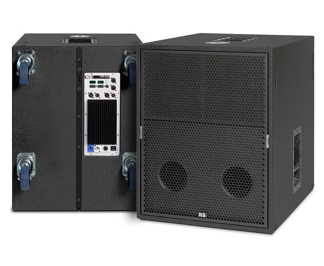 As it can be expected from KS AUDIO loudspeakers, the CPD SUB bass is not only powerful, but also features a high sound quality. This optimum is achieved by using four heavy duty, 10′′ long excursion woofers with 30mm voice coil height. The relatively low moving mass of the coated membranes combined with push-pull technology results in a precise transient response and decay. The speakers are mounted in pairs in two separate matched chambers with shared acoustic loads. This results in minimum distortion values.